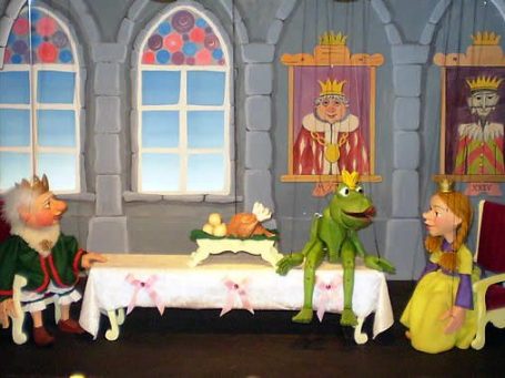 Gespielt wurde das Stück „Der Froschkönig“ nach dem bekannten Märchen der Gebrüder Grimm. In liebevoll gestalteten Bildern erzählte das Klick-Klack-Theater die Geschichte von der kleinen Prinzessin, die beim Spielen ihre goldene Kugel in den Brunnen verliert und sie nur mithilfe des Froschkönigs zurückbekommt. Dabei ging es auch um die Frage, ob man sein Wort halten muss – selbst dann, wenn es einem schwerfällt.